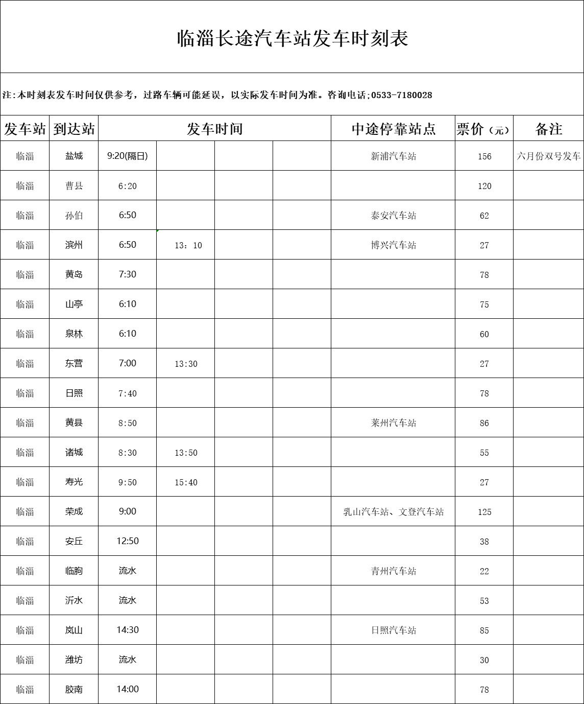 -----臨淄發(fā)車(chē)時(shí)刻表-----